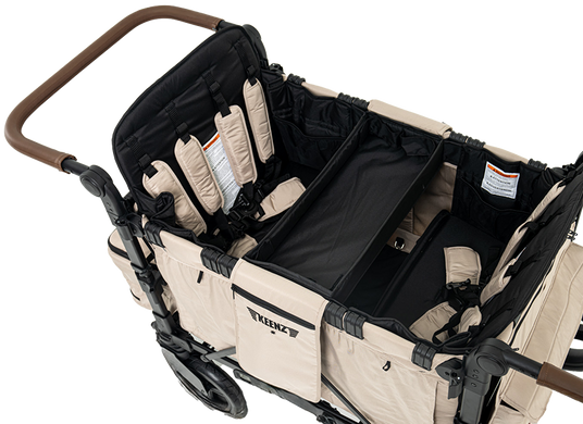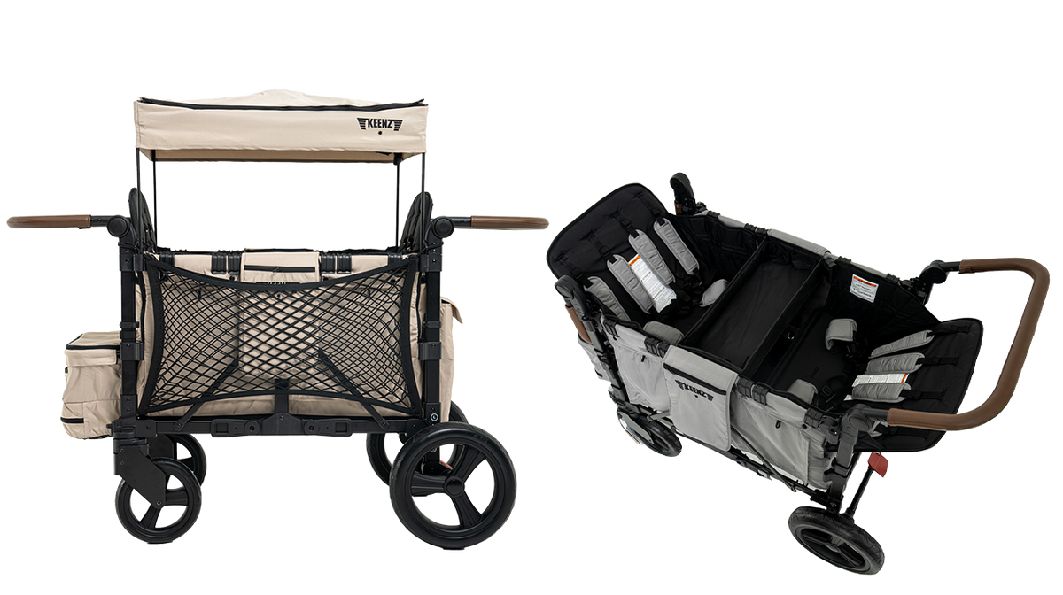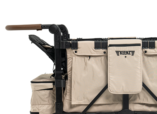 Dive into a world where comfort meets convenience with Keenz Stroller Wagons, featuring raised, removable, and reclining seats. Elevate your child’s view and comfort as they experience the world from a secure, snug perch. These thoughtfully designed, elevated seats not only enhance visibility but also ensure a cozy, relaxing ride, making every journey a shared adventure in comfort and style.