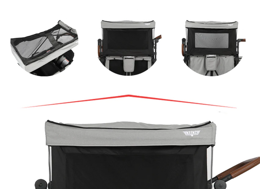 Immerse in the tranquility of outdoor adventures with the Traditional Keenz Canopy System, now upgraded with Blackout Panels and standard UV Protection. Shield your loved ones from the sun's glare and harmful rays while ensuring they enjoy the cool, calm comfort of their private haven. This canopy system redefines outdoor safety and comfort, making every outing a serene, protected journey under the sun.