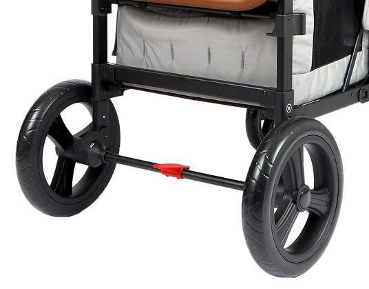 Discover effortless navigation on diverse grounds with our all-terrain wheels, featuring durable 14" rear and 9.75" front sizes coupled with dynamic spring suspension. Ideal for off-road adventures and city explorations alike, these wheels offer unmatched stability and ease, ensuring a serene and comfortable ride for your little ones on trails, parks, and paved paths. Dive into every adventure with confidence and let every outing with your family be a memorable one.