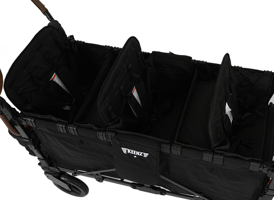 Dive into a world where comfort meets convenience with Keenz Stroller Wagons, featuring raised, removable, and reclining seats. Elevate your child’s view and comfort as they experience the world from a secure, snug perch. These thoughtfully designed, elevated seats not only enhance visibility but also ensure a cozy, relaxing ride, making every journey a shared adventure in comfort and style.
