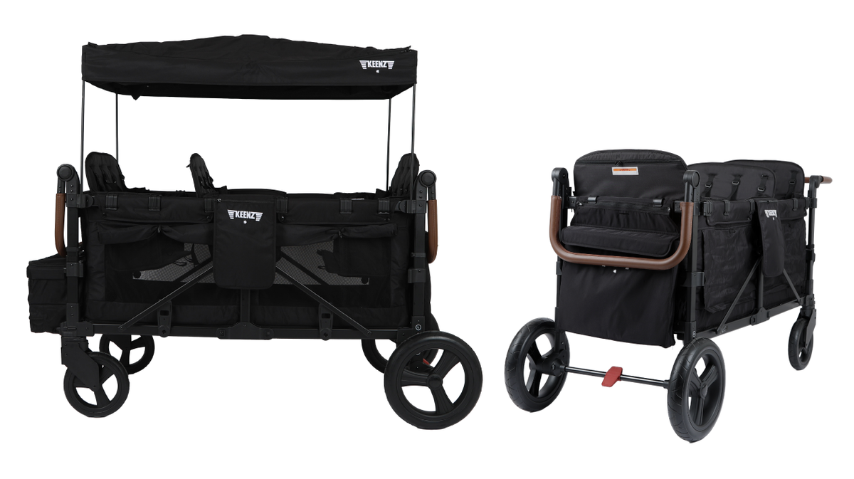 The most spacious and comfortable luxury stroller wagon in the Keenz lineup is here—fully loaded with all-terrain rubber wheels, a built-in activity tray, and ample storage space, thoughtfully engineered for larger families, daycares, and group caregivers.